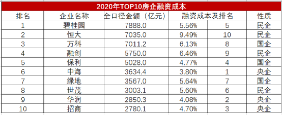 發現什么沒有?融資成本排在前四位的都是國企或央企,他們的融資利率均不到5%。