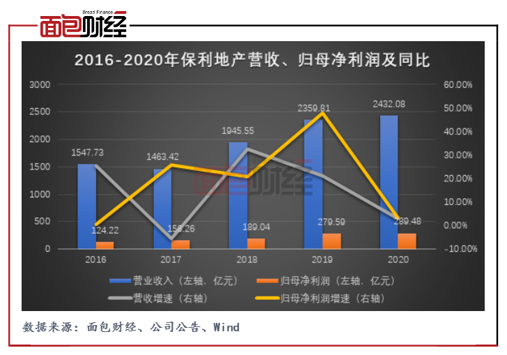 圖1:2016-2020年保利地產營收、歸母凈利潤及同比