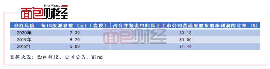 公司2020年分紅比率也有所下降。2020年,公司擬以實施權益分派股權登記日總股本為基數,每10 股派發現金紅利7.30 元(含稅),分紅比例為30.18%,較2019年下滑4.82個百分點。根據保利發展新發布的《2021-2023年股東回報規劃》,公司未來三年(即2021-2023 年)分紅率下調為不低于25%,而2015 年-2020 年,公司分紅比例均維持在30%以上。