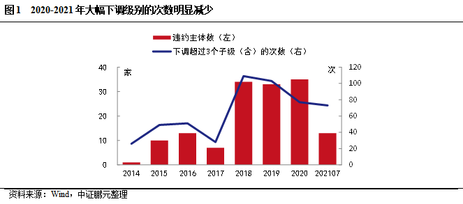 一、大幅度級別調整次數明顯減少,級別上調率逐年降低