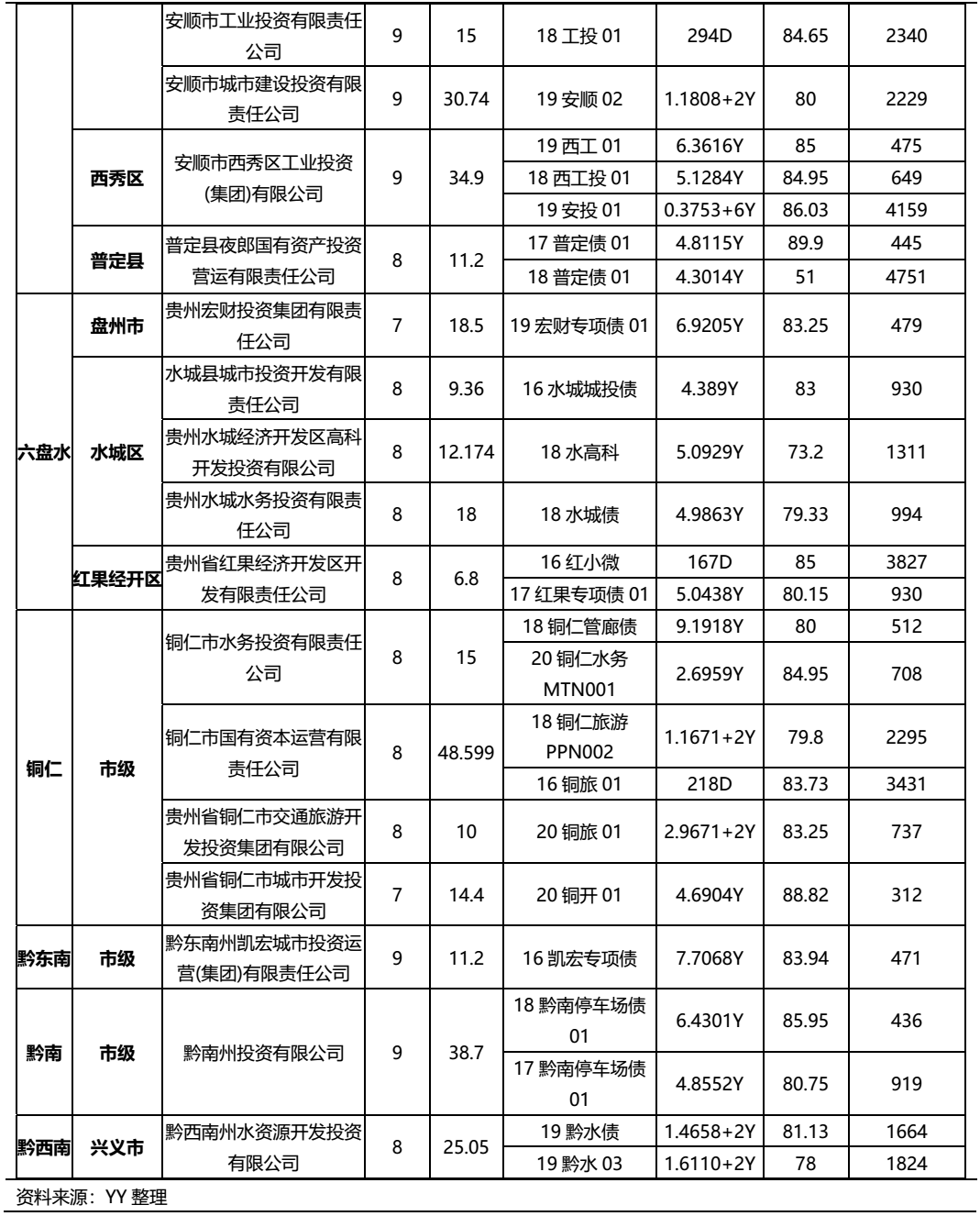 其余平臺(tái)中,折價(jià)原因可能來(lái)自多方面,如非標(biāo)違約歷史(遵義道橋、安順西工投等)、民企擔(dān)保(安順城建等)、市場(chǎng)化運(yùn)營(yíng)及子公司控制不足(黔西南州水資源開(kāi)發(fā)投資有限公司等),還有可能是區(qū)域環(huán)境拖累以及機(jī)構(gòu)的持倉(cāng)策略或情緒影響。