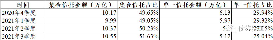 如果單純從信托產(chǎn)品的結(jié)構(gòu)來看,投向信用債券的信托產(chǎn)品應(yīng)該是包括了單一信托產(chǎn)品和集合信托產(chǎn)品,具體比例無法確定,但是集合信托產(chǎn)品的比重也可能一直在上升階段。