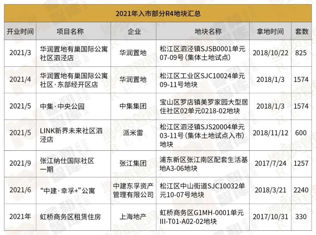 2021年3月,華潤置地有巢國際公寓泗涇社區開業運營,成為首個開業的R4租賃用地社區項目。被張江集團拿下的全國首幅R4地塊,則被建設為張江納仕國際社區,一期430套房源已于9月啟動供應。