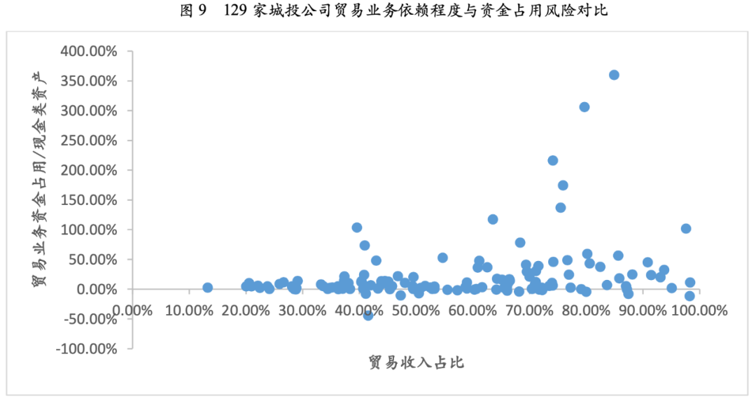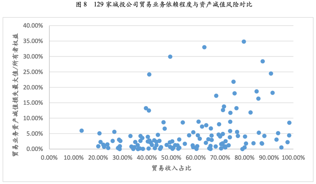 城投公司貿易業務資產減值損失風險及資金占用風險與公司貿易業務依賴度關系不大,或更多取決于公司貿易模式及結算模式。
