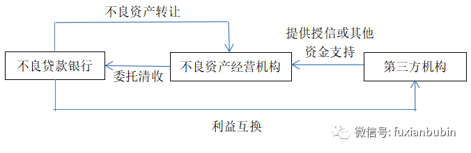 該交易模式下,不良資產經營機構從第三方機構獲取資金,并將其用于收購特定銀行的不良貸款,不良貸款銀行與不良資產經營機構不再簽訂任何回購條款,委托清收協議中不再設置清收目標,但不良資產經營機構在這一過程中受到的損失將通過第三方機構進行補足,不良貸款出表銀行與第三方機構通過同業授信、項目貸款等方式進行利益互換。由于不良資產出表銀行與第三方機構簽訂的協議不在債權轉讓項目的相關資料之中,雖然與監管要求真實出表存在一定的差距,但從目前的監管要求中并沒有相關的禁止性要求。