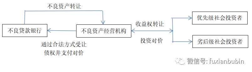 此類業務的開展,社會投資者會與不良資產經營機構共同對金融機構擬出讓的不良資產包組織盡職調查,并由不良資產經營機構出面在一級市場上通過合法方式受讓債權并支付對價。社會投資者會與不良資產經營機構簽訂合作協議,不良資產經營機構在收購該資產后,采用結構化分層的方式,將相關收益權轉讓給優先級社會投資者和次級社會投資者,各投資者持有擬投資資金所對應的部分債權的債權收益權,并實際享有包括但不限于該部分債權的清收回款、抵押權、質押權等相關擔保權益;不良資產經營持牌機構根據《合作協議》的約定,定期支付固定回報。劣后級投資者對優先級收益權持有人的收益進行差額補足。約定處置期屆滿后,劣后級投資者回購不良資產經營機構和與優先級投資者所持有的不良資產(收益權)本金余額。