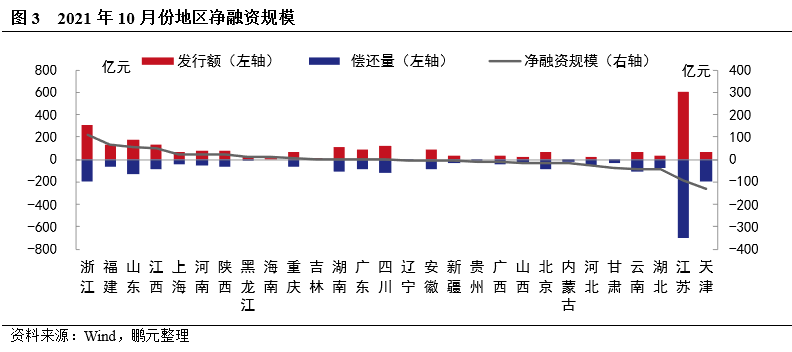 2. 10月份以浙江、福建凈融資規模較大,凈償還的省份增加