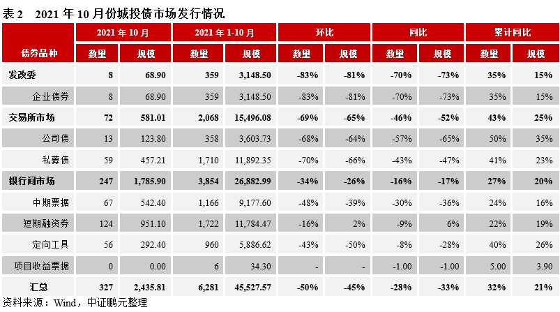 原標題: 2021年10月城投債發行統計分析報告