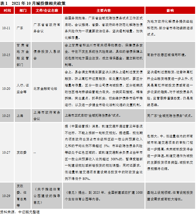 一、2021年10月城投政策觀察
