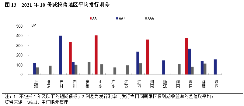 6. 10月份城投債發行利率中樞下行,利差分化