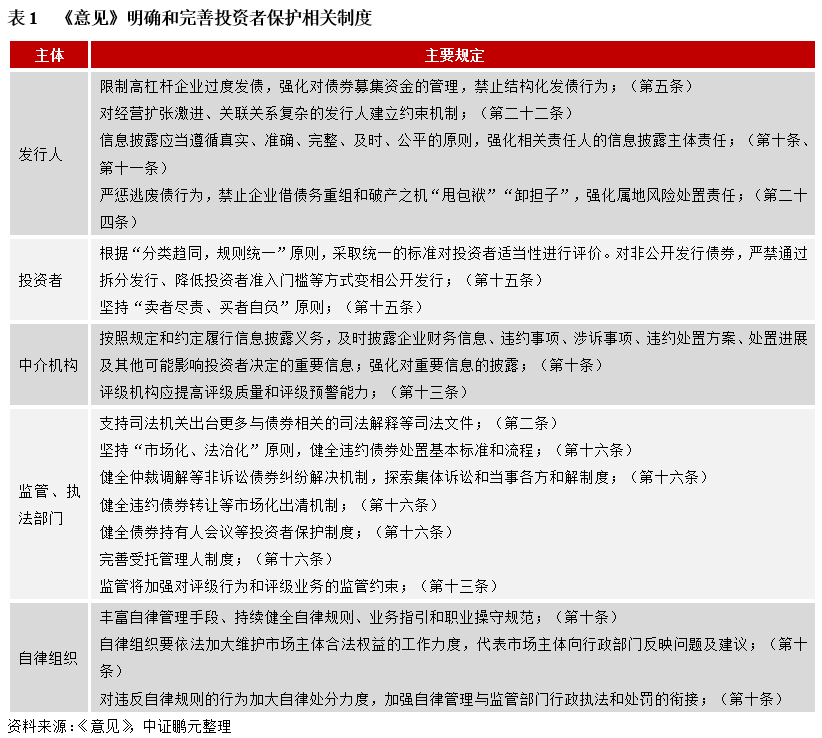隨著債券風險的顯露,相關制度缺失帶來的投資者保護缺失問題亟待解決。我國債券市場長期處于分割狀態(tài),多頭監(jiān)管導致市場信息不對稱、債券市場流動性受限等問題,同時,“剛兌”思想使得發(fā)行人和投資者未能建立完善的風險識別、評估和處置制度,市場發(fā)行、交易方式和主體結構相對單一,投資者保護制度未受到足夠重視。近年來,經濟下行壓力加大、貿易摩擦持續(xù)、新冠疫情突發(fā)等負面事件的影響,債券風險暴露頻率提升、覆蓋主體范圍不斷擴大。2019年以來,為促進債券市場健康發(fā)展,相關政策逐步推出,包括統(tǒng)一監(jiān)管和執(zhí)法、銀行間市場和交易所市場互聯(lián)互通、統(tǒng)一信息披露、完善司法處置等,但各政策存在一定的不足,《意見》在前期政策基礎上,進行統(tǒng)一和補充,形成較為明確的指導性文件。