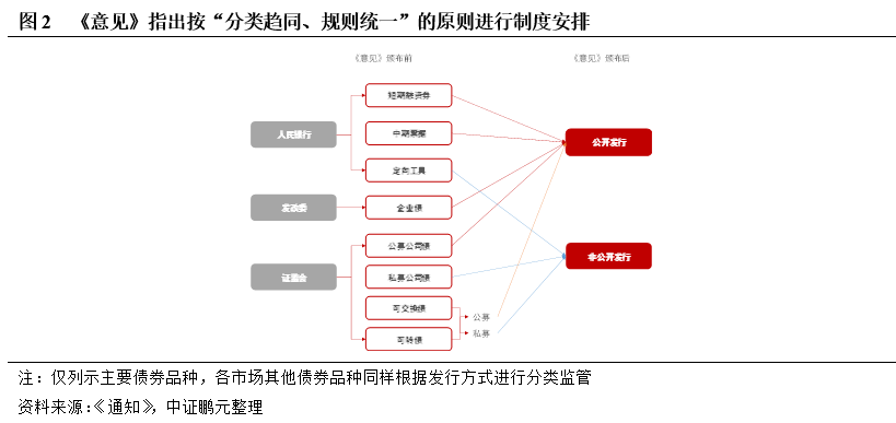 在發(fā)行和存續(xù)期管理方面,《意見》指出,將按照“分類趨同”的原則,分別按照公開發(fā)行和非公開發(fā)行公司信用類債券對相關標準進行統(tǒng)一。按照發(fā)行方式對債券的發(fā)行、存續(xù)期信息披露和投資者適當性標準,設定各自的標準,有利于降低發(fā)行人和投資者的選擇成本,提高債券融資效率,同時從源頭實現(xiàn)風險和收益的合理分配。