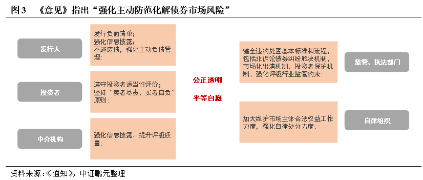 隨著我國債券市場的發(fā)展,完善投資者保護及市場風險化解迫在眉睫。《意見》在前期政策的基礎上,將制度整合,構建出較為清晰的頂層設計,對債券發(fā)行、存續(xù)期、違約后進行全周期管理,覆蓋發(fā)行人、中介機構、自律組織、監(jiān)管和執(zhí)法機關等參與主體。《意見》強調,要把主動防范化解債券市場風險放在更加重要的位置,筑牢市場準入、早期干預和處置退出三道防線,健全風險監(jiān)測預警機制。維護債券違約處置過程公正透明、平等自愿,充分保障投資者合法權益。本文認為,主動風險管理制度包括各參與方的日常風險識別和跟蹤制度、債務管理工具(包括現(xiàn)金要約收購、債券置換等)、風險處置制度等。隨著覆蓋債券存續(xù)期的風險管理制度的完善,將為風險定價奠定基礎。