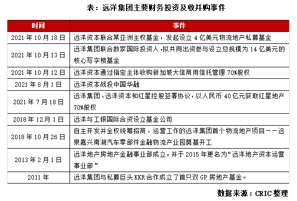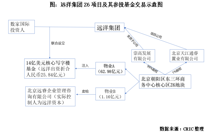 10月12日遠洋資本收購新加坡REITs70%股權;10月13日,遠洋集團以64.15億元代價將全資子公司崇高發展公司出售,崇高發展擁有北京朝陽區東三環商務中心核心區Z6地塊;同日遠洋集團聯合國際投資人設立寫字樓基金,共同出資參與設立總規模為14億美元的核心寫字樓基金,用于投資一線城市城市核心商圈成熟甲級寫字樓項目,其中就包括上述折合約62.98億元Z6地塊物業A部分。