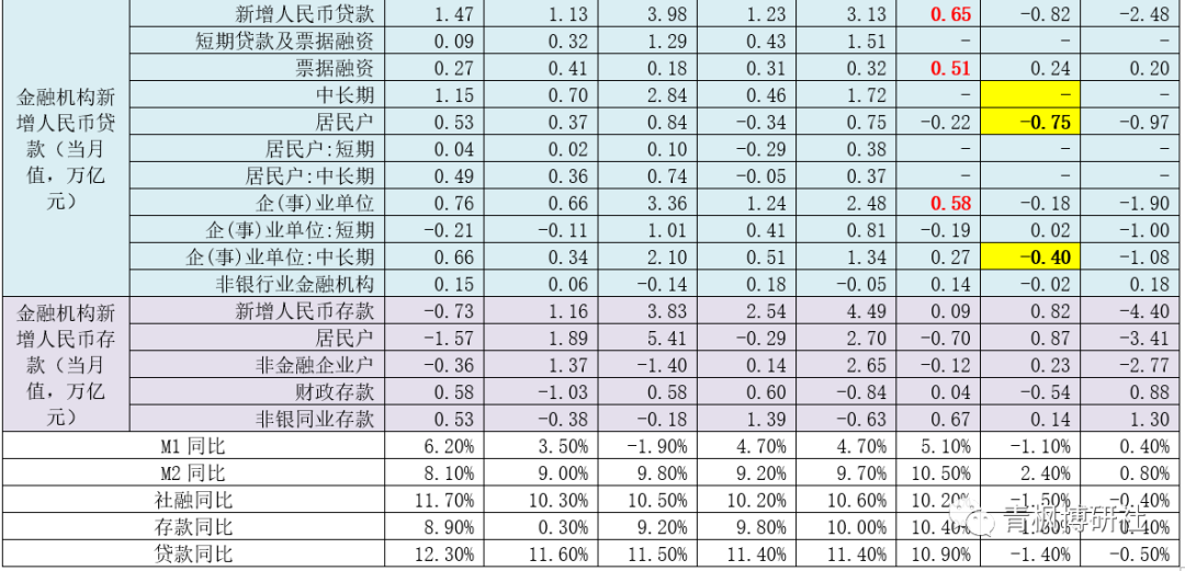 我想更為關(guān)注的是,這次有4個(gè)指標(biāo)未公布,即短期貸款及票據(jù)、中長期貸款、居民短期貸款和居民中長期貸款。同時(shí),針對(duì)上述四個(gè)指標(biāo),央行在表述上似乎換了口徑,如披露了住房貸款、不含住房貸款的消費(fèi)貸款以及經(jīng)營性貸款等。
