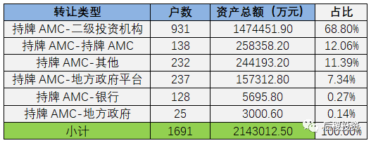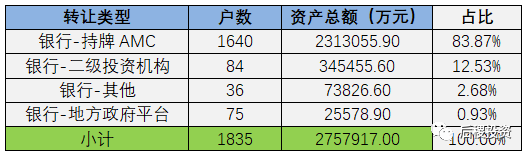 按轉(zhuǎn)讓及受讓主體類型分(只考慮有明確債權(quán)金額部分):