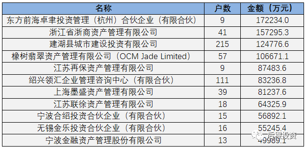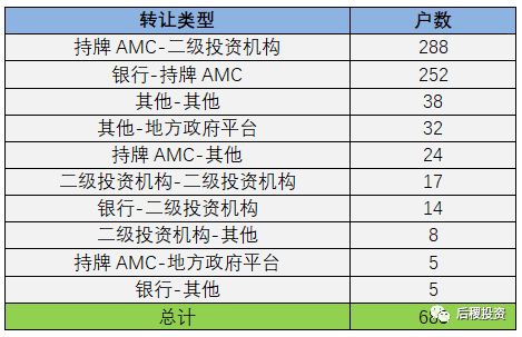 上表所示活躍受讓主體受讓資產(chǎn)比重近50%。在東方前海資產(chǎn)、浙商資產(chǎn)、橡樹以及地方政府資本帶動下,二級投資機構(gòu)進一步活躍。