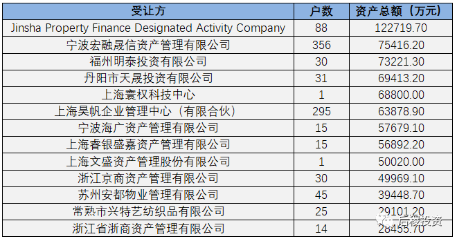 另未透露債權(quán)金額成交明細如下: