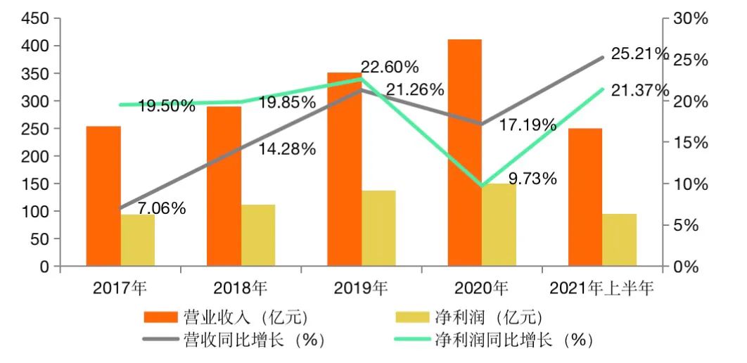 圖 2:2017年-2021年上半年寧波銀行營(yíng)業(yè)收入
