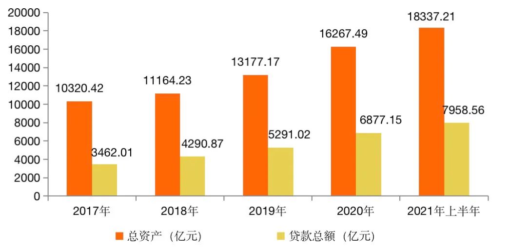 統(tǒng)計(jì)數(shù)據(jù)顯示,寧波銀行的資產(chǎn)規(guī)模從2017年的10320.42億元增長(zhǎng)至2021年上半年的18337.21億元,增幅達(dá)到近八成。與此同時(shí),貸款總額也從3462.01億元增長(zhǎng)至7958.56億元,增幅實(shí)現(xiàn)1.3倍,可見(jiàn)近年來(lái)保持穩(wěn)健的增長(zhǎng)態(tài)勢(shì)。