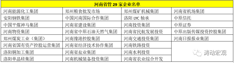 (三)2016年河南省啟動了重點省屬國有工業企業改革,2017年則將國企改革由工業企業轉向全部企業。目前河南省共有29家省管(屬)國企名單。