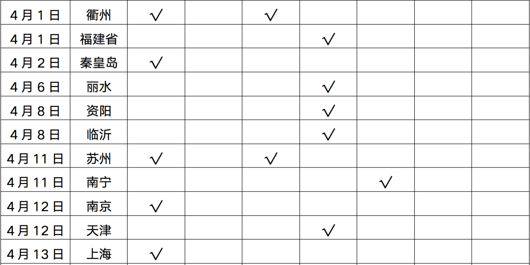 進入4月,南京、蘇州等強二線城市跟進放松限購,放松限購城市已達12城。比如南京,非戶籍家庭在六合、溧水兩區購買首套房,無需提供社?;騻€稅證明,衢州、秦皇島更是全面取消限購。