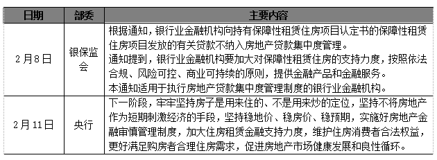 中央層面,央行、銀保監會發布關于保障性租賃住房有關貸款不納入房地產貸款集中度管理的通知,根據通知,銀行業金融機構向持有保障性租賃住房項目認定書的保障性租賃住房項目發放的有關貸款不納入房地產貸款集中度管理。