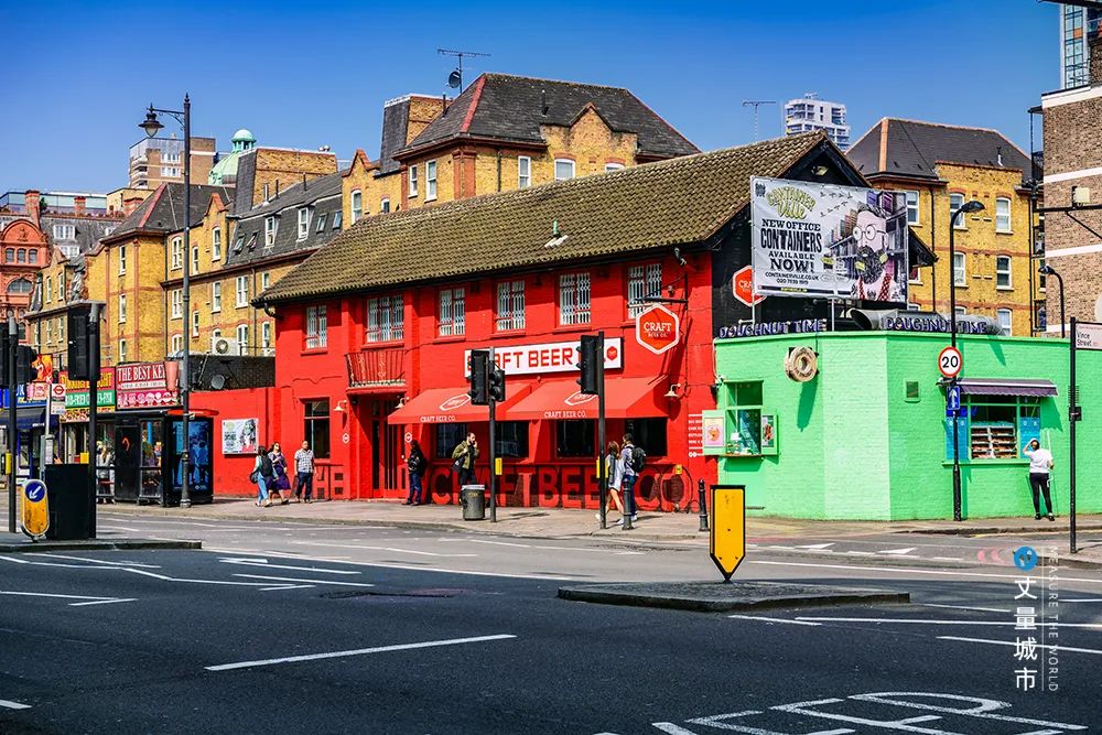 這里也是倫敦最早實(shí)行涂鴉合法化的區(qū)域,來(lái)自全球的涂鴉大師在此創(chuàng)作,吸引到年輕人來(lái)此打卡。有了人流量,沿街的商鋪逐漸復(fù)蘇。