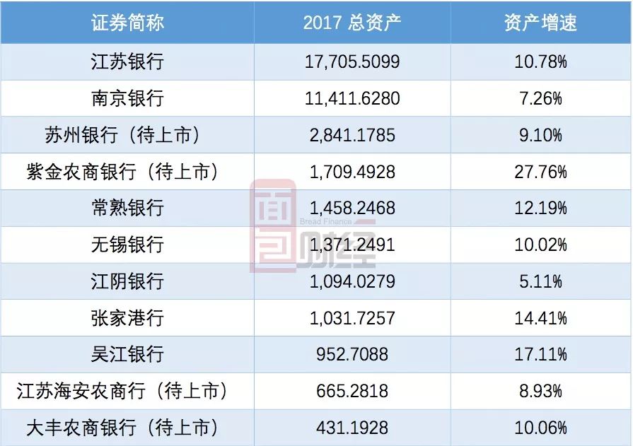 在已上市的銀行中,資產(chǎn)規(guī)模最小的為吳江銀行,截至2017年底總資產(chǎn)達952.71億元。如果剩余三家江蘇省內(nèi)銀行能成功過會上市,大豐農(nóng)商行或?qū)?chuàng)A股最迷你上市銀行記錄。
