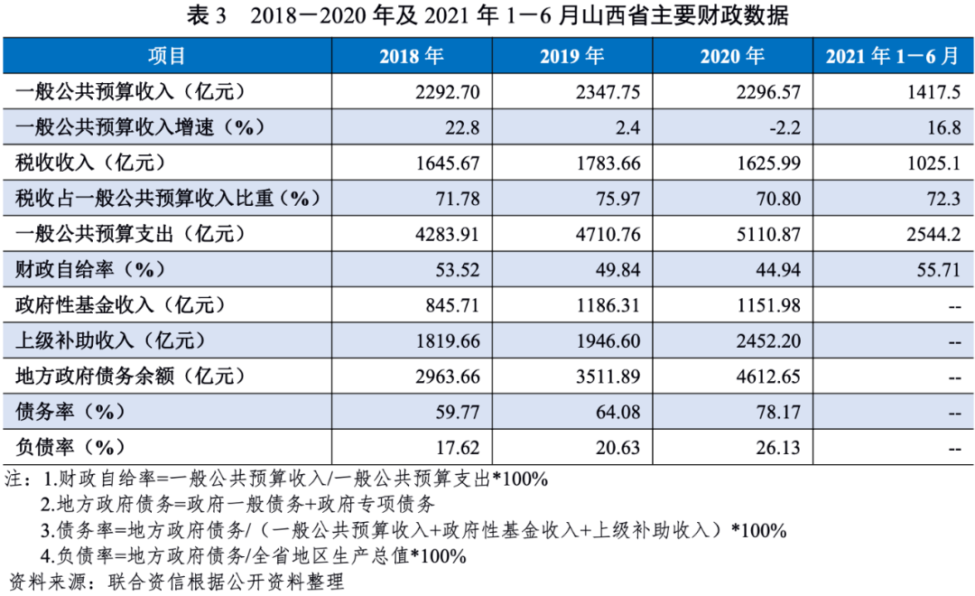 2.山西省財政實力及債務情況