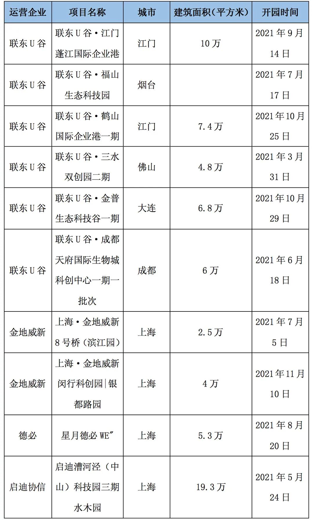 聯東U谷:截止2021年底,聯東U谷產業園區累計運營項目數量351個,累計管理項目建筑面積為4001萬平方米,2021年新開業項目6個,新開業面積14.2萬平方米。近一年來,聯東集團投資了5家頭部投資機構,進一步豐富了金融服務矩陣,推動了產業培育與企業加速。