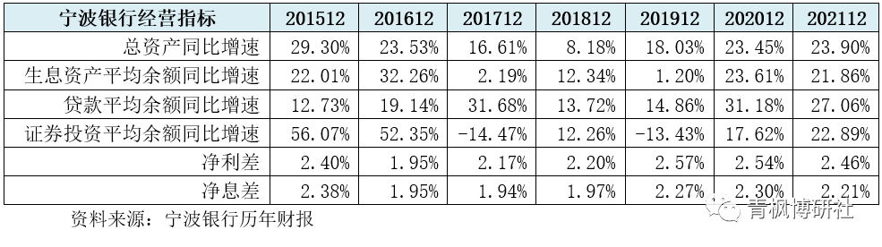 近年來寧波銀行的規模增長較為迅猛,總資產連續超過盛京銀行、南京銀行,躍居至城商行第4位,排在北京銀行、上海銀行和江蘇銀行之后。截至2021年12月底,寧波銀行總資產達到2.02萬億元,全年凈增近4000億元。